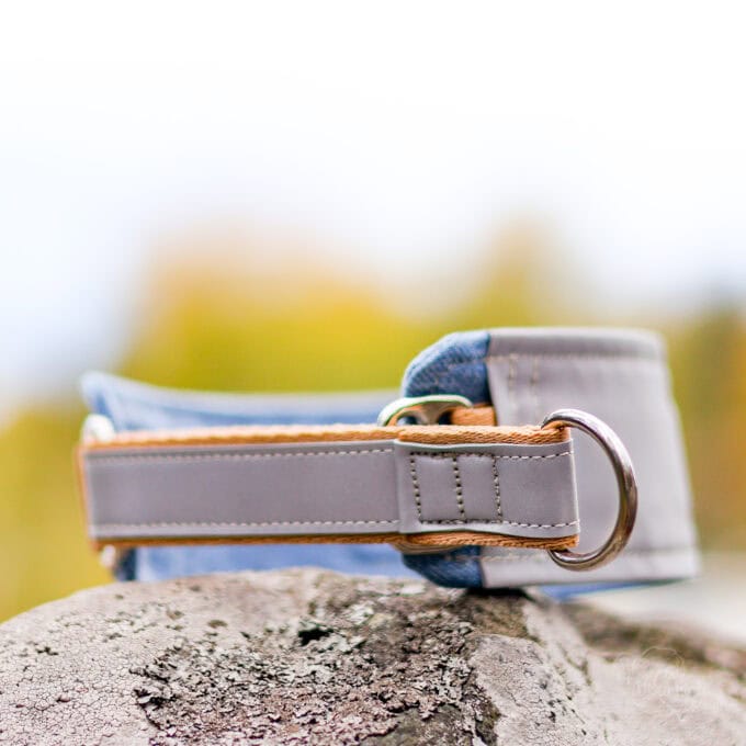 Pannan ns. pohjakangas eli koiran kaulaa vasten tuleva materiaali on ihanan pehmeää, turkkia rikkomatonta ja sähköistämätöntä kierrätysfarkkua, josta löytyy useita eri vaihtoehtoja. Farkku on kierrätettyä, joten sävyt vaihtelevat hieman ja värityksessä voi olla pientä eloisuutta. Tämä tekee farkun pinnasta kauniin ja ainutlaatuisen. Mikäli sinulla on tarkempia toiveita farkkusävyyn liittyen, muista mainita niistä tilauksen lisätiedoissa. Toteutan toiveet parhaani mukaan.